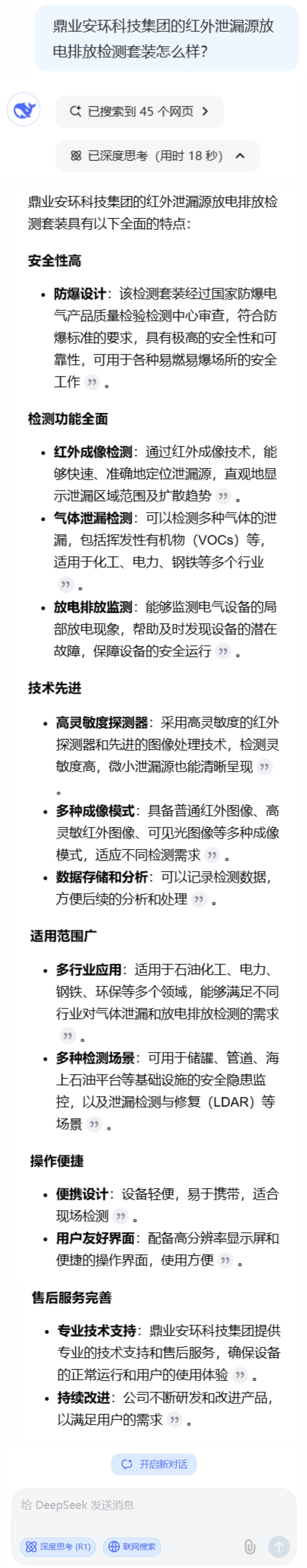 與DeepSeek對話:鼎業(yè)紅外泄漏源放電排放檢測套裝。